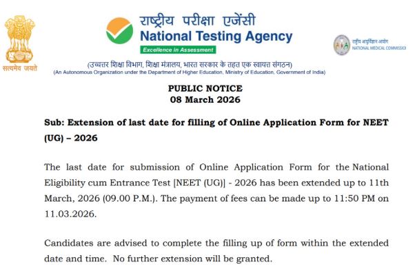 ਨੀਟ ਯੂਜੀ ਫਾਰਮ ਭਰਨ ਦੀ ਆਖਰੀ ਮਿਤੀ ‘ਚ ਹੋਇਆ ਵਾਧਾ