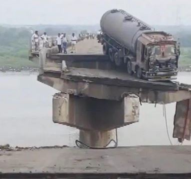 ਗੁਜਰਾਤ, 9 ਜੁਲਾਈ – ਗੁਜਰਾਤ ਵਿੱਚ ਮਹੀਸਾਗਰ ਨਦੀ ‘ਤੇ ਬਣੇ ਪੁਲ ਦਾ ਇੱਕ ਹਿੱਸਾ ਢਹਿ ਗਿਆ। ਇਸ ਦੌਰਾਨ ਕਈ ਵਾਹਨ ਨਦੀ ਵਿੱਚ ਡਿੱਗ ਗਏ। ਦੋ ਲੋਕਾਂ ਦੇ ਮਾਰੇ ਜਾਣ ਦੀ ਖ਼ਬਰ ਹੈ ਜਦੋਂ ਕਿ ਕਈ ਲੋਕਾਂ ਨੂੰ ਬਚਾਇਆ ਗਿਆ ਹੈ। ਦੱਸ ਦਈਏ ਕਿ ਇਹ ਪੁਲ 43 ਸਾਲ ਪੁਰਾਣਾ ਸੀ। ਵਡੋਦਰਾ-ਆਨੰਦ ਨੂੰ ਜੋੜਨ ਵਾਲਾ ਇਹ ਗੰਭੀਰਾ ਪੁਲ ਉਸ ਸਮੇਂ ਢਹਿ ਗਿਆ ਜਦੋਂ ਭਾਰੀ ਆਵਾਜਾਈ ਸੀ। ਇਸ ਘਟਨਾ ਦਾ ਇੱਕ ਵੀਡੀਓ ਸੋਸ਼ਲ ਮੀਡੀਆ ‘ਤੇ ਵਾਇਰਲ ਹੋ ਰਿਹਾ ਹੈ, ਜਿਸ ਵਿੱਚ ਇੱਕ ਟਰੱਕ ਅੱਧੇ ਟੁੱਟੇ ਪੁਲ ‘ਤੇ ਲਟਕਦਾ ਦਿਖਾਈ ਦੇ ਰਿਹਾ ਹੈ।