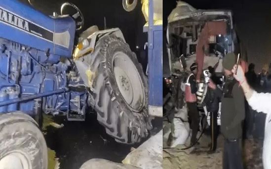 ਸਵਾਰੀਆਂ ਨਾਲ ਭਰੀ ਬੱਸ ਦੀ ਟਰੈਕਟਰ-ਟਰਾਲੀ ਨਾਲ ਹੋਈ ਟੱਕਰ, ਜਾਨੀ ਨੁਕਸਾਨ ਤੋਂ ਬਚਾਅ