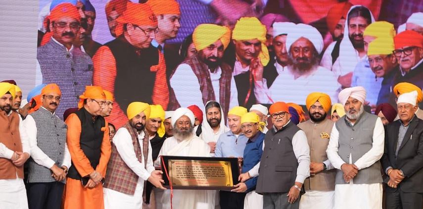ਸ੍ਰੀ ਅਨੰਦਪੁਰ ਸਾਹਿਬ, 24 ਨਵੰਬਰ (ਗਿਆਨ ਸਿੰਘ/ਏ.ਡੀ.ਪੀ ਨਿਊਜ਼) – ਨੌਵੇਂ ਪਾਤਸ਼ਾਹ ਸ੍ਰੀ ਗੁਰੂ ਤੇਗ਼ ਬਹਾਦਰ ਜੀ ਦੇ 350ਵੇਂ ਸ਼ਹੀਦੀ ਦਿਹਾੜੇ ਨੂੰ ਸਮਰਪਿਤ ‘ਸਰਬ ਧਰਮ ਸੰਮੇਲਨ’ ਵਿੱਚ ਪੰਜਾਬ ਦੇ ਮੁੱਖ ਮੰਤਰੀ ਭਗਵੰਤ ਸਿੰਘ ਮਾਨ ਅਤੇ ਆਪ ਦੇ ਕੌਮੀ ਕਨਵੀਨਰ ਅਰਵਿੰਦ ਕੇਜਰੀਵਾਲ ਨੇ ਅੱਜ ਵਿਸ਼ਵ ਭਰ ਦੇ ਸਤਿਕਾਰਤ ਧਾਰਮਿਕ ਆਗੂਆਂ ਨਾਲ ਗੁਰੂ ਸਾਹਿਬ ਜੀ ਨੂੰ ਸ਼ਰਧਾ ਤੇ ਸਤਿਕਾਰ ਭੇਟ ਕੀਤਾ। ਇਸ ਮੌਕੇ ਹਾਜ਼ਰ ਵੱਡੀ ਗਿਣਤੀ ਵਿੱਚ ਸੰਗਤ ਨੂੰ ਸੰਬੋਧਨ ਕਰਦਿਆਂ ‘ਆਪ’ ਦੇ ਰਾਸ਼ਟਰੀ ਕਨਵੀਨਰ ਅਰਵਿੰਦ ਕੇਜਰੀਵਾਲ ਨੇ ਕਿਹਾ ਕਿ ਉਹ ਸ੍ਰੀ ਗੁਰੂ ਤੇਗ਼ ਬਹਾਦਰ ਸਾਹਿਬ ਨੂੰ ਸ਼ਰਧਾਂਜਲੀ ਭੇਟ ਕਰਨ ਲਈ ਇੱਥੇ ਇਕੱਤਰ ਹੋਏ ਸਾਰੇ ਧਾਰਮਿਕ ਆਗੂਆਂ ਦੇ ਧੰਨਵਾਦੀ ਹਨ। ਉਨ੍ਹਾਂ ਕਿਹਾ ਕਿ ਪੂਰੇ ਇਤਿਹਾਸ ਵਿੱਚ ਸ਼ਾਇਦ ਹੀ ਕੋਈ ਅਜਿਹੀ ਮਿਸਾਲ ਮਿਲਦੀ ਹੋਵੇ, ਜਦੋਂ ਦੂਜਿਆਂ ਦੇ ਧਰਮ ਨੂੰ ਬਚਾਉਣ ਲਈ ਸ਼ਹਾਦਤ ਦਿੱਤੀ ਗਈ ਹੋਵੇ। ਉਨ੍ਹਾਂ ਕਿਹਾ ਕਿ ਗੁਰੂ ਸਾਹਿਬ ਜੀ ਨੇ ਧਾਰਮਿਕ ਆਜ਼ਾਦੀ ਦੀ ਰਾਖੀ ਕਰਦਿਆਂ ਮਹਾਨ ਬਲਿਦਾਨ ਦਿੱਤਾ। ਅਰਵਿੰਦ ਕੇਜਰੀਵਾਲ ਨੇ ਕਿਹਾ ਕਿ ਇਹ ਬਹੁਤ ਮਹੱਤਵਪੂਰਨ ਹੈ ਕਿ ਦੁਨੀਆ ਭਰ ਦੇ ਧਾਰਮਿਕ ਆਗੂ ਸੂਬਾ ਸਰਕਾਰ ਨਾਲ ਮਹਾਨ ਗੁਰੂ ਸਾਹਿਬ ਜੀ ਨੂੰ ਸ਼ਰਧਾਂਜਲੀ ਭੇਟ ਕਰਨ ਲਈ ਸ੍ਰੀ ਅਨੰਦਪੁਰ ਸਾਹਿਬ ਦੀ ਪਵਿੱਤਰ ਧਰਤੀ ‘ਤੇ ਪਹੁੰਚੇ ਹਨ।