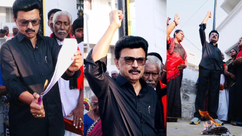ਤਾਮਿਲਨਾਡੂ ਦੇ ਮੁੱਖ ਮੰਤਰੀ ਐੱਮ ਕੇ ਸਟਾਲਿਨ ਨੇ ਸਾੜੀ ਹਲਕਾਬੰਦੀ ਬਿੱਲ ਦੀ ਕਾਪੀ