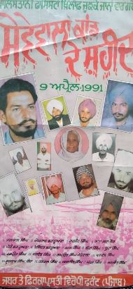 ਇਹ ਉਹ ਵੇਲ਼ਾ ਸੀ ਜਦੋਂ ਪੰਜਾਬ ਵਿੱਚ ਦੁਪਹਿਰ ਵੇਲੇ, ਅੱਧੀ ਰਾਤ ਵਰਗਾ ਦਹਿਸ਼ਤੀ ਸੰਨਾਟਾ ਪੱਸਰ ਜਾਂਦਾ ਸੀ। ਜਦੋਂ ਬੱਸਾਂ ਦੀਆਂ ਸਵਾਰੀਆਂ ਨੂੰ ਮੂੰਹ ਹਨੇਰੇ ਹੀ ਹਿੰਦੂ ਅਤੇ ਸਿੱਖ ਦੇ ਹਿੰਦਸਿਆਂ ਨਾਲ਼ ਤਕਸੀਮ ਕਰ ਦਿੱਤਾ ਜਾਂਦਾ ਸੀ। ਜਦੋਂ ਪਲਾਂ ਛਿਣਾਂ ਵਿੱਚ ਇੱਕ ਫਿਰਕੇ ਦੇ ਨਿਹੱਥੇ ਅਤੇ ਬੇਦੋਸ਼ੇ ਲੋਕਾਂ ਨੂੰ ਸਦਾ ਦੀ ਨੀਂਦ ਸੁਲਾ ਦਿੱਤਾ ਜਾਂਦਾ ਸੀ। ਕਬੀਰ, ਫਰੀਦ, ਬਾਬਾ ਨਾਨਕ, ਬਾਬਾ ਬੁੱਲੇ ਸ਼ਾਹ, ਗੁਰੂ ਰਵਿਦਾਸ, ਮਾਈ ਭਾਗੋ, ਗ਼ਦਰੀ, ਬਬਰ ਅਕਾਲੀ, ਕਿਰਤੀ ਲਹਿਰ ਅਤੇ ਭਗਤ ਸਿੰਘ ਤੇ ਉਨ੍ਹਾਂ ਦੇ ਸਾਥੀਆਂ ਦੀ ਸਿਰਜੀ ਲਹਿਰ ਅਤੇ ਅਮੀਰ ਵਿਰਾਸਤ ਨੂੰ ਘੱਟੇ ਰੋਲਿਆ ਜਾ ਰਿਹਾ ਸੀ। ਉਸ ਮੌਕੇ ਅਜਿਹੇ ਲੋਕ ਕਾਫ਼ਲੇ ਵੀ ਸੀਸ ਤਲੀ ’ਤੇ ਧਰ ਕੇ ਪੰਜਾਬ ਦੇ ਮੈਦਾਨ ’ਚ ਨਿੱਤਰੇ ਸਨ ਜਿਹੜੇ ਦੋ ਮੂੰਹੀਂ ਦਹਿਸ਼ਤਗਰਦੀ ਨੂੰ ਵੰਗਾਰਦੇ ਸਨ। 9 ਅਪਰੈਲ 1991 ਦਾ ਸਮਾਗਮ ਇਸ ਲੋਕ ਕਾਫ਼ਲੇ ਦਾ ਹੀ ਸਮਾਗਮ ਸੀ। ਆਪਣੇ ਮਹਿਬੂਬ ਸੰਗੀ ਸਾਥੀਆਂ ਦੇ ਵਿਛੋੜੇ ਅਤੇ ਪਰਿਵਾਰਾਂ ਦੇ ਪਰਬਤੋਂ ਭਾਰੀ ਸਦਮੇ ਦੀ ਕਹਾਣੀ ਅੱਜ ਵੀ ਅੱਖੀਆਂ ਦੇ ਵਰਕਿਆਂ ਤੋਂ ਸਾਫ਼ ਪੜ੍ਹੀ ਜਾ ਸਕਦੀ ਹੈ। ਇਹ ਵਰਕੇ ਬੋਲਦੇ ਹਨ ਕਿ 9 ਅਪਰੈਲ 1991 ਨੂੰ ਜਦੋਂ ਅਸੀਂ ਬੱਸ ਰਾਹੀਂ ਜੈਤੋ ਬੱਸ ਅੱਡੇ ਪੁੱਜੇ ਤਾਂ ਜਬਰ ਤੇ ਫਿਰਕਾਪ੍ਰਸਤੀ ਵਿਰੋਧੀ ਫਰੰਟ ਪੰਜਾਬ ਦਾ ਕਨਵੀਨਰ ਜਗਪਾਲ ਸੇਲਬਰਾਹ ਸਾਨੂੰ ਇਥੋਂ ਜੀਪ ਰਾਹੀਂ ਸੇਵੇਵਾਲਾ ਲੈ ਕੇ ਗਿਆ। ਉਹ ਰਾਹ ਵਿੱਚ ਸਮਾਗਮ ਦੀ ਤਿਆਰੀ ਦੀਆਂ ਗੱਲਾਂ ਕਰਦਾ ਗਿਆ। ਇਸ ਨਾਟਕ ਟੀਮ ਵਿੱਚ ਮਰਹੂਮ ਹੰਸਾ ਸਿੰਘ ਬਿਆਸ, ਹੰਸਾ ਸਿੰਘ ਦੇ ਨਾਲ ਬਿਆਸ ਤੋਂ ਹੀ ਭੈਣ-ਭਰਾ ਰਾਣੀ ਅਤੇ ਦੇਵ, ਇਸ ਤੋਂ ਇਲਾਵਾ ਸੁਮਨ ਲਤਾ, ਹਰਮੇਸ਼ ਮਾਲੜੀ, ਅਮਰਜੀਤ ਮੱਲ੍ਹੀ, ਸੁਖਜਿੰਦਰ ਕੇਦਾਰ (ਦੋਵੇਂ ਹੁਸ਼ਿਆਰਪੁਰ ਤੋਂ) ਅਤੇ ਇਉ ਹੀ ਫਰੰਟ ਦੀ ਸ਼ਾਹਕੋਟ ਇਕਾਈ ਦੇ ਕਨਵੀਨਰ ਮਹਿੰਦਰ ਸ਼ਾਹਕੋਟ ਵੀ ਪਹੁੰਚੇ ਹੋਏ ਸਨ। ‘ਅੰਨ੍ਹੇ ਨਿਸ਼ਾਨਚੀ’ ਨਾਟਕ ਦੀ ਪੇਸ਼ਕਾਰੀ ਉਪਰੰਤ ਜਦੋਂ ਫਰੰਟ ਦਾ ਕਨਵੀਨਰ ਹਥਲੀਆਂ ਸਤਰਾਂ ਦਾ ਲੇਖਕ ਮੰਚ ਤੋਂ ਸੰਬੋਧਨ ਕਰ ਰਿਹਾ ਸੀ ਤਾਂ ਫ਼ੌਜੀ ਵਰਦੀਆਂ ਵਿੱਚ ਆਏ ਕਾਤਲ ਗਰੋਹ ਨੇ ਪੰਡਾਲ ਵਿੱਚ ਅਤੇ ਘਰਾਂ ਦੀਆਂ ਛੱਤਾਂ ਉੱਤੇ ਬੈਠੇ ਲੋਕਾਂ ਉੱਪਰ ਗ੍ਰਨੇਡ ਸੁੱਟੇ। ਅੰਨ੍ਹੇਵਾਹ ਫਾਇਰਿੰਗ ਕੀਤੀ। ਵਾਲੰਟੀਅਰਾਂ ਨੂੰ ਹਮਲੇ ਦਾ ਚੋਣਵਾਂ ਨਿਸ਼ਾਨਾ ਬਣਾਇਆ। ਅੰਨ੍ਹੇਵਾਹ ਫਾਇਰਿੰਗ ਮੌਕੇ ਮੰਚ ’ਤੇ ਲੱਗੇ ਪਰਦੇ ਪਿੱਛੇ ਰੰਗਮੰਚ ਦੇ ਗ੍ਰੀਨ ਰੂਮ ਰੂਪੀ ਕਮਰੇ ਵਿੱਚ ਸ਼ਹੀਦ ਮੇਘ ਰਾਜ ਭਗਤੂਆਣਾ ਦੀ ਜੀਵਨ ਸਾਥਣ ਰਾਜ ਰਾਣੀ ‘ਰਾਜ’, ਉਨ੍ਹਾਂ ਦੀ ਧੀ ਸ਼ਰਨਜੀਤ ਕਾਲੀ ਵੀ ਮੌਜੂਦ ਸਨ। ਪਲਾਂ ਛਿਣਾਂ ਵਿੱਚ 18 ਸਾਥੀਆਂ ਨੂੰ ਸ਼ਹੀਦ ਕਰ ਦਿੱਤਾ। ਜਿਨ੍ਹਾਂ ਵਿੱਚ ਮੇਘ ਰਾਜ ਭਗਤੂਆਣਾ, ਜਗਪਾਲ ਸੇਲਬਰਾਹ, ਮਾਤਾ ਸਦਾ ਕੌਰ, ਗੁਰਜੰਟ ਢਿੱਲਵਾਂ ਸਮੇਤ 18 ਸਾਥੀ ਸ਼ਹਾਦਤ ਪਾ ਗਏ। ਇਸ ਦਿਨ ਸਿਦਕਦਿਲੀ ਨਾਲ ਕਾਤਲਾਂ ਦਾ ਪਿੱਛਾ ਕਰਦਿਆਂ ਸ਼ਹੀਦ ਹੋਏ ਮੇਘ ਰਾਜ ਭਗਤੂਆਣਾ ਦੀ ਉਸ ਮੌਕੇ 14 ਵਰ੍ਹਿਆਂ ਦੀ ਧੀ ਅੱਜ ਭਾਰਤੀ ਕਿਸਾਨ ਯੂਨੀਅਨ ਏਕਤਾ ਉਗਰਾਹਾਂ ਦੀ ਆਗੂ ਹਰਿੰਦਰ ਬਿੰਦੂ ਬਠਿੰਡਾ ਜ਼ਿਲ੍ਹੇ ਦੇ ਪਿੰਡ ਵਿਰਕ ਕਲਾਂ ਆਪਣੀ ਭੂਆ ਕੋਲ਼ ਗਈ ਹੋਈ ਸੀ। ਉਨ੍ਹਾਂ ਕੋਲ ਬਿੰਦੂ ਦੇ ਚਾਚਾ ਲੱਛੂ ਨੇ ਜਾ ਕੇ ਦੱਸਿਆ ਕਿ ਮੇਘ ਰਾਜ ਭਗਤੂਆਣਾ ਦੇ ਗੋਲੀ ਵੱਜੀ ਹੈ ਅਤੇ ਉਹ ਹਸਪਤਾਲ ਦਾਖ਼ਲ ਹੈ।