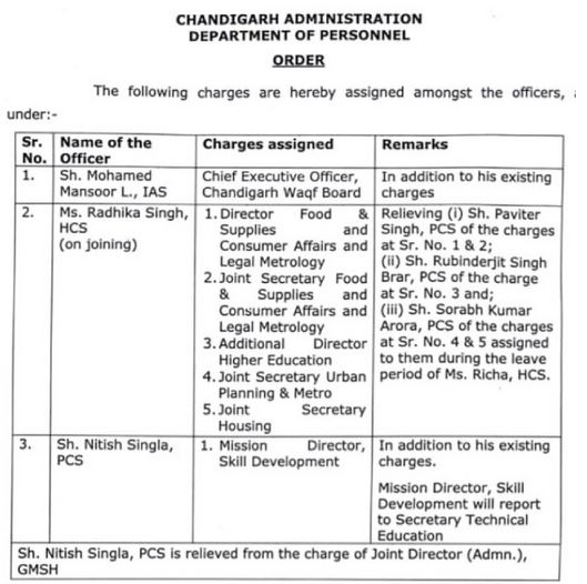 ਚੰਡੀਗੜ੍ਹ, 28 ਜੁਲਾਈ - ਚੰਡੀਗੜ੍ਹ ਪ੍ਰਸ਼ਾਸਨ ਦੇ ਪ੍ਰਸੋਨਲ ਵਿਭਾਗ ਵੱਲੋਂ ਜਾਰੀ ਹੁਕਮਾਂ ਅਨੁਸਾਰ, ਕੁਝ ਸੀਨੀਅਰ…