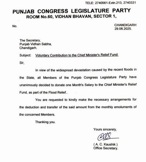 29, ਅਗਸਤ - ਹੜ੍ਹ ਪੀੜਤਾਂ ਲਈ ਪੰਜਾਬ ਕਾਂਗਰਸ ਦੇ ਸਾਰੇ ਵਿਧਾਇਕਾਂ ਨੇ 1 ਮਹੀਨੇ ਦੀ…