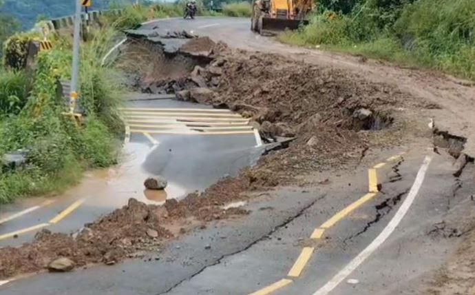 ਲਗਾਤਾਰ ਮੀਂਹ ਨਾਲ ਲੁਧਿਆਣਾ ਸਿਟੀ ਸੈਂਟਰ ਕੋਲ ਸੜਕ ਵਿੱਚ ਪਿਆ ਵੱਡਾ ਪਾੜ