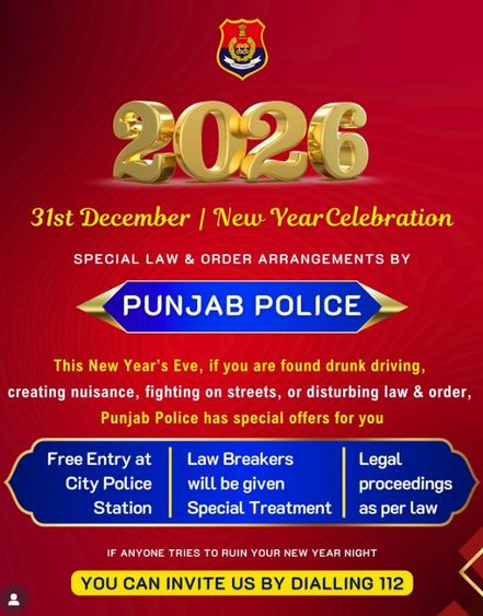 ਲੁਧਿਆਣਾ, 31 ਦਸੰਬਰ - ਲੁਧਿਆਣਾ ਵਿੱਚ ਨਵੇਂ ਸਾਲ ਦੇ ਜਸ਼ਨ ਨੂੰ ਧਿਆਨ ਵਿੱਚ ਰੱਖਦੇ ਹੋਏ…