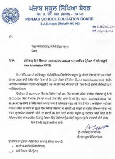 ਚੰਡੀਗੜ੍ਹ, 7 ਫਰਵਰੀ - ਪੰਜਾਬ ਸਕੂਲ ਸਿੱਖਿਆ ਬੋਰਡ ਨਾਲ ਐਫੀਲਿਏਟਿਡ ਤੇ ਐਸੋਸੀਏਟਿਡ ਸਕੂਲ ਪ੍ਰਿੰਸੀਪਲਾਂ ਨੇ…