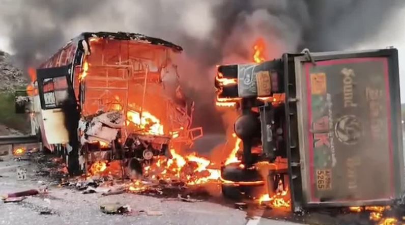 ਟਿੱਪਰ ਨਾਲ ਟੱਕਰ ਮਗਰੋਂ ਬੱਸ ਨੂੰ ਲੱਗੀ ਅੱਗ
