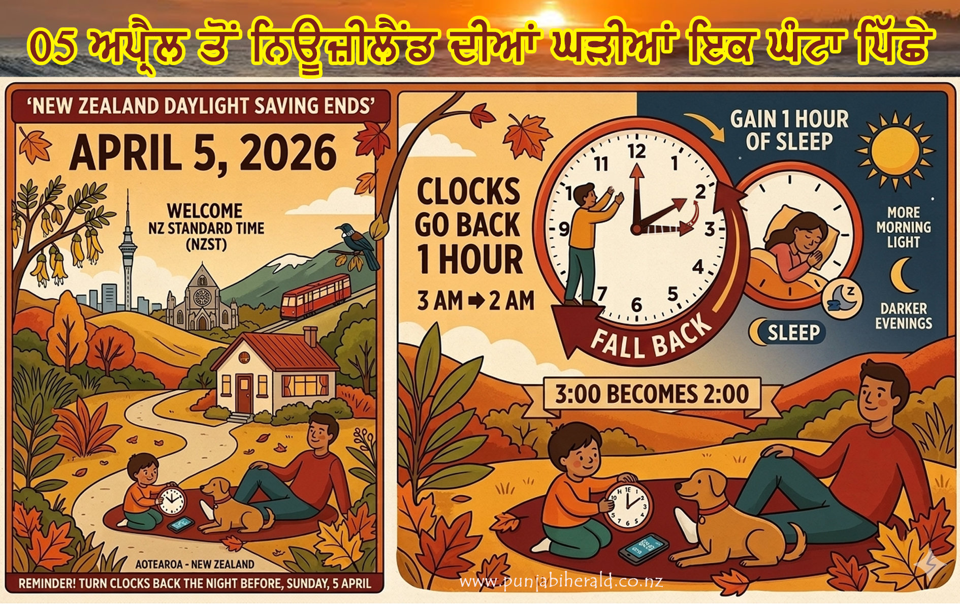 *ਐਤਵਾਰ 05 ਅਪ੍ਰੈਲ ਤੋਂ ਨਿਊਜ਼ੀਲੈਂਡ ਦੀਆਂ ਘੜੀਆਂ ਇਕ ਘੰਟਾ ਪਿੱਛੇ ਹੋ ਜਾਣਗੀਆਂ *ਸਿਆਲ ਦੇ ਆਗਾਮੀ…