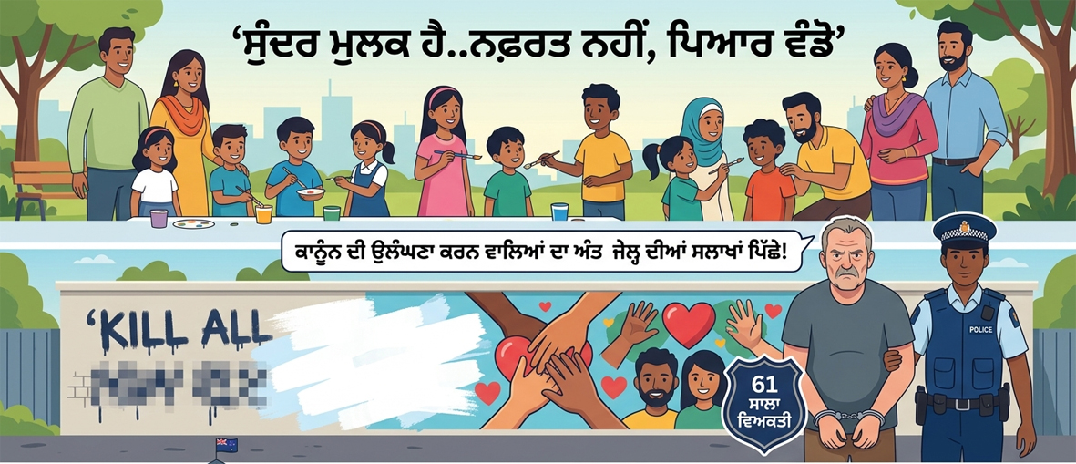 *ਪਾਪਾਟੋਏਟੋਏ ਸਕੂਲ ਬਾਹਰ ‘ਸਾਰੇ ਭਾਰਤੀਆਂ ਨੂੰ ਖਤਮ ਕਰੋ’ ਲਿਖਣ ਵਾਲਾ 61 ਸਾਲਾ ਵਿਅਕਤੀ ਪੁਲਿਸ ਵੱਲੋਂ…