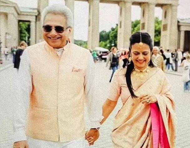 ਉੜੀਸਾ ਦੇ ਪੁਰੀ ਲੋਕ ਸਭਾ ਹਲਕੇ ਤੋਂ ਤਿੰਨ ਵਾਰ ਸੰਸਦ ਮੈਂਬਰ ਰਹਿ ਚੁੱਕੇ ਮਿਸ਼ਰਾ ਦੇ ਪਿਛਲੇ ਵਿਆਹ ਤੋਂ ਦੋ ਬੱਚੇ ਹਨ। ਮਹੂਆ ਮੋਇਤਰਾ ਦਾ ਵੀ ਇਹ ਦੂਜਾ ਵਿਆਹ ਹੈ। ਵਾਇਰਲ ਫੋਟੋ ਵਿਚ 50 ਸਾਲਾ ਮੋਇਤਰਾ ਸੋਨੇ ਅਤੇ ਗੁਲਾਬੀ ਰੰਗੀ ਸਾੜੀ ਵਿੱਚ ਸਜੀ ਹੋਈ, ਆਪਣੇ ਪਤੀ ਮਿਸ਼ਰਾ ਨਾਲ ਜਰਮਨੀ ਦੀਆਂ ਸੜਕਾਂ ‘ਤੇ ਹੱਥ ਵਿੱਚ ਹੱਥ ਪਾ ਕੇ ਤੁਰਦੀ ਹੋਈ ਦਿਖਾਈ ਦੇ ਰਹੀ ਹੈ। ਉਸ ਦਾ ਪਹਿਲਾ ਵਿਆਹ ਡੈਨਿਸ਼ ਫਾਈਨਾਂਸਰ ਲਾਰਸ ਬ੍ਰੋਰਸਨ ਨਾਲ ਹੋਇਆ ਸੀ। ਉਹ ਪਹਿਲਾਂ ਵਕੀਲ ਜੈ ਅਨੰਤ ਦੇਹਰਾਦਰਾਈ ਨਾਲ ਕਥਿਤ ਤੌਰ ‘ਤੇ ਹਾਈ-ਪ੍ਰੋਫਾਈਲ ਰਿਸ਼ਤੇ ਵਿੱਚ ਵੀ ਸੀ।